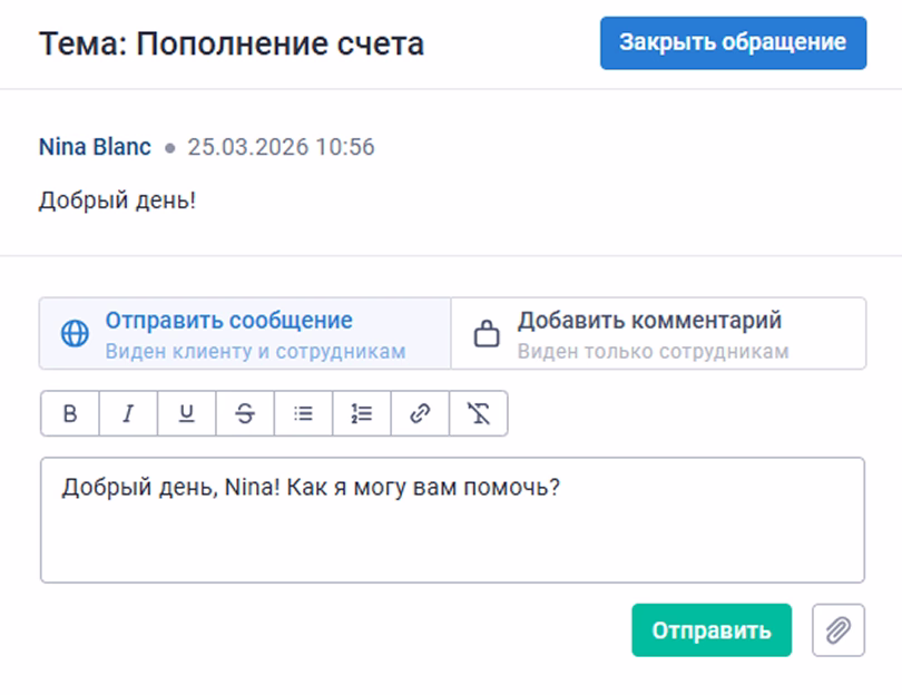 - Принимайте и обрабатывайте заявки клиентов на ввод-вывод средств